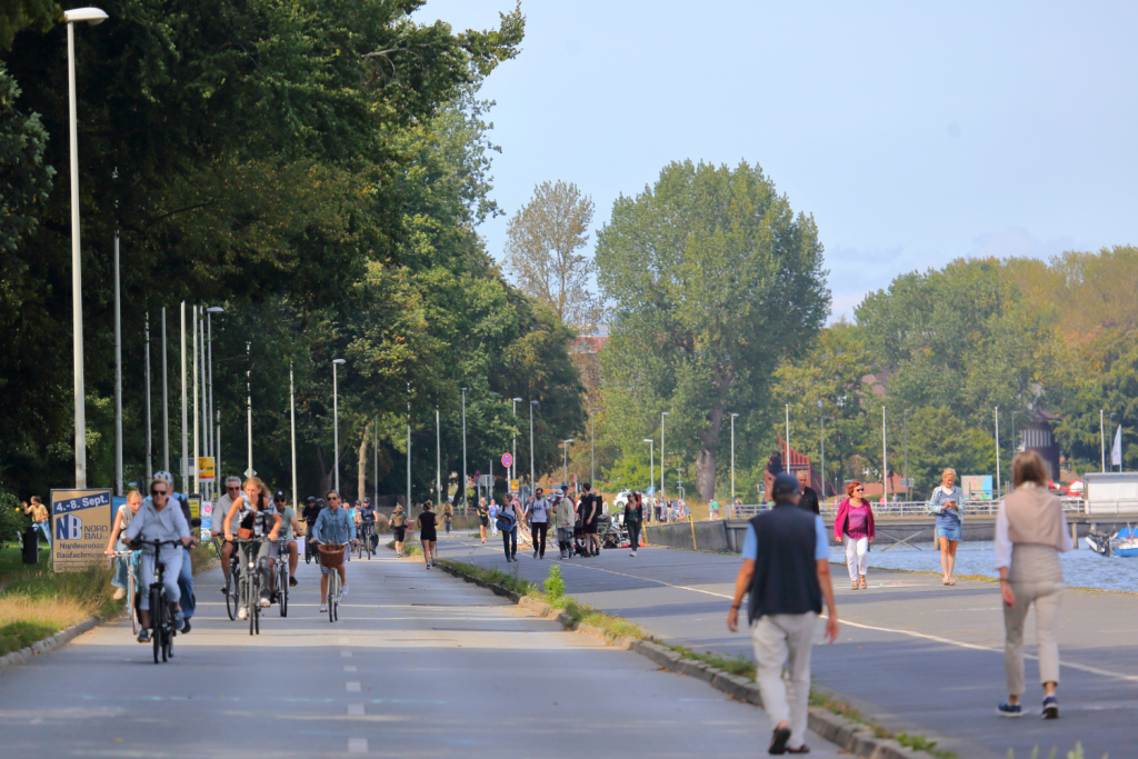 In many intensive and constructive discussions with residents from neighboring districts and streets such as Wik, Düsternbrooks, Holtenauer, and Feldstraße, we have gained a key insight: The vast majority think the idea of a car-free Kiellinie, the redesign as a promenade, better access to the water, improvements for pedestrians and cyclists, and more seating and play areas are great.