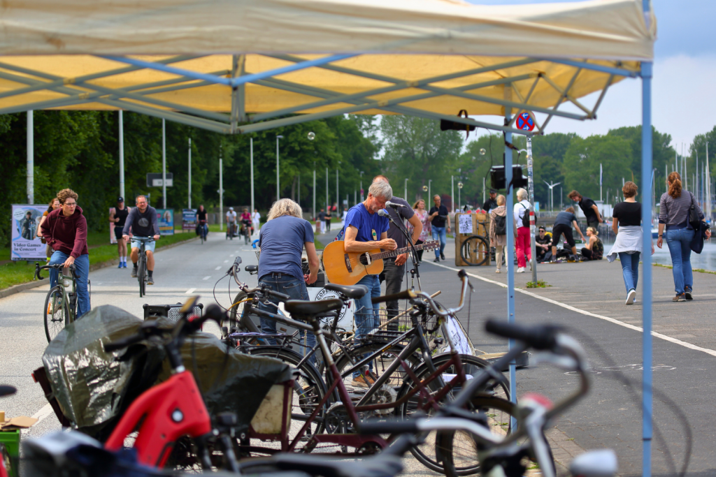 The OpenKiellinie is a demonstration, or more precisely a "Kundgebung", demonstrating in favour of making the northern Kiellinie car-free. Visitors are given the opportunity to reclaim this area for a few hours each month, fill it with life and enjoy the benefits of a car-free Kiellinie.